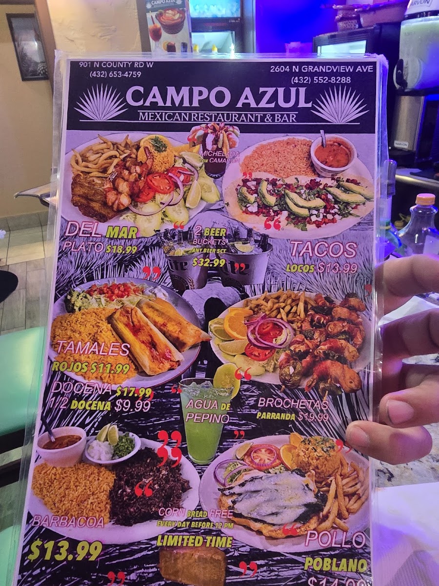When you're in the mood for bold flavors and a vibrant atmosphere, Casa Campo Mexican Grill & Bar Menu is the place to be. Located at 901 N County Rd W in Odessa, TX, this spot offers a diverse menu that brings authentic Mexican cuisine to life. From sizzling fajitas to savory tacos, every dish is packed with fresh ingredients and traditional spices. Whether you're craving a hearty burrito or some crispy nachos, there's something to satisfy every taste. The drink menu is just as exciting, with refreshing margaritas and cold beers to complement your meal. Every bite at Casa Campo feels like a celebration, making it the perfect spot for any occasion, whether you're enjoying a casual meal with friends or a special evening out.